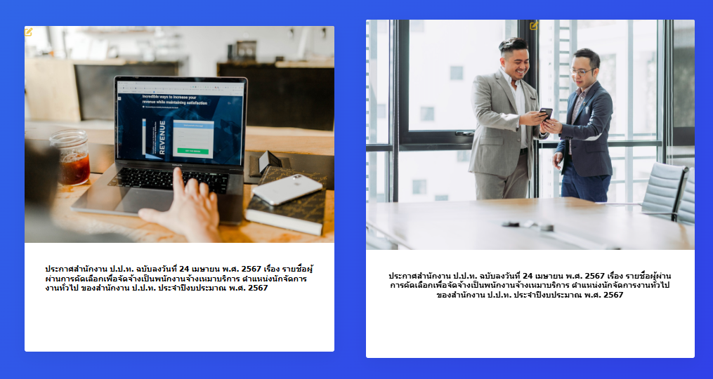 ประกาศสำนักงาน ป.ป.ท. ลงวันที่ 3 พฤษภาคม พ.ศ. 2567 เรื่อง รายชื่อผู้ผ่านการประเมินบุคคลเพื่อเข้ารับการประเมินผลงานเพื่อเลื่อนขึ้นแต่งตั้งให้ดำรงตำแหน่งประเภทวิชาการ ระดับชำนาญการ
